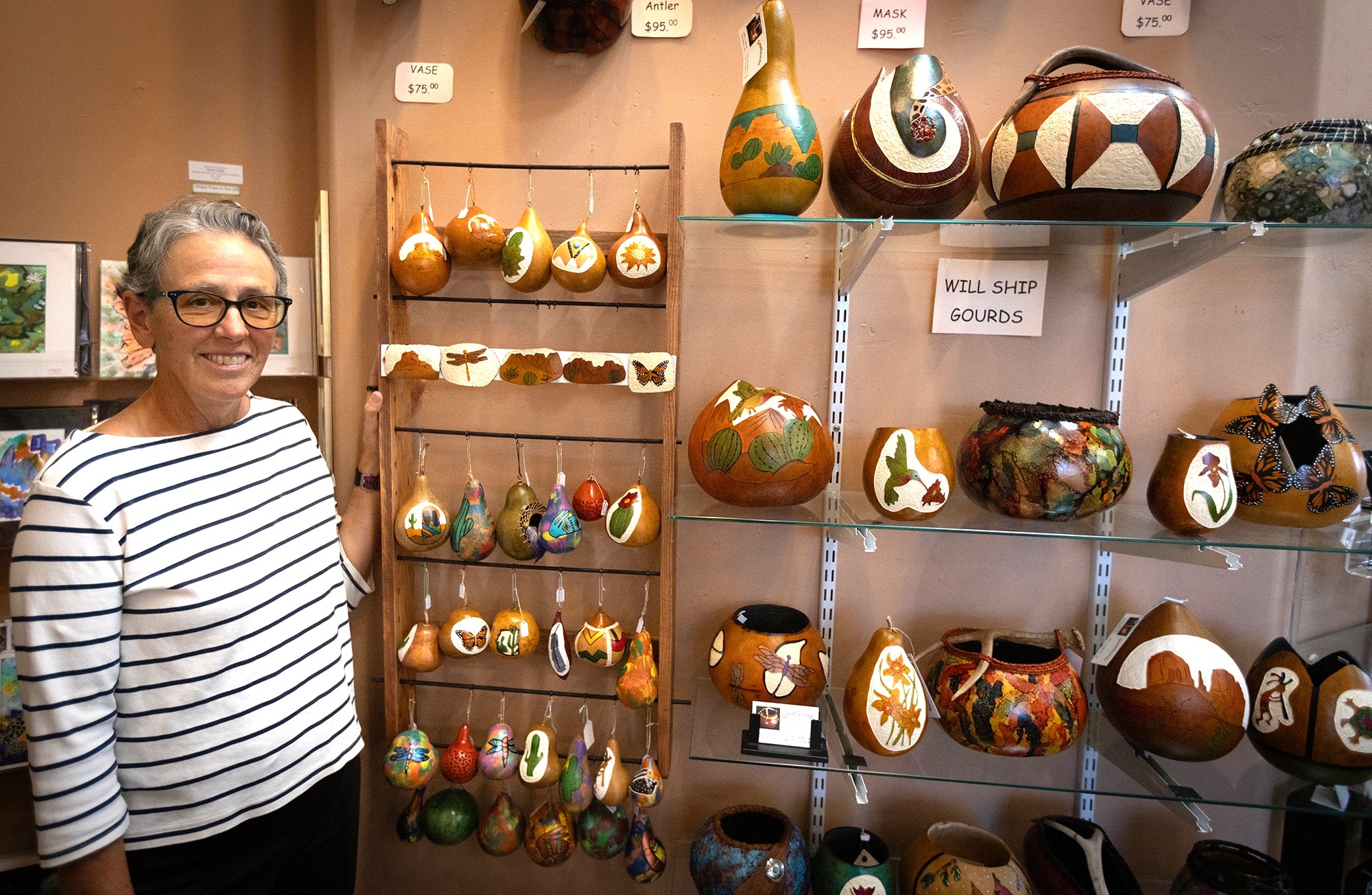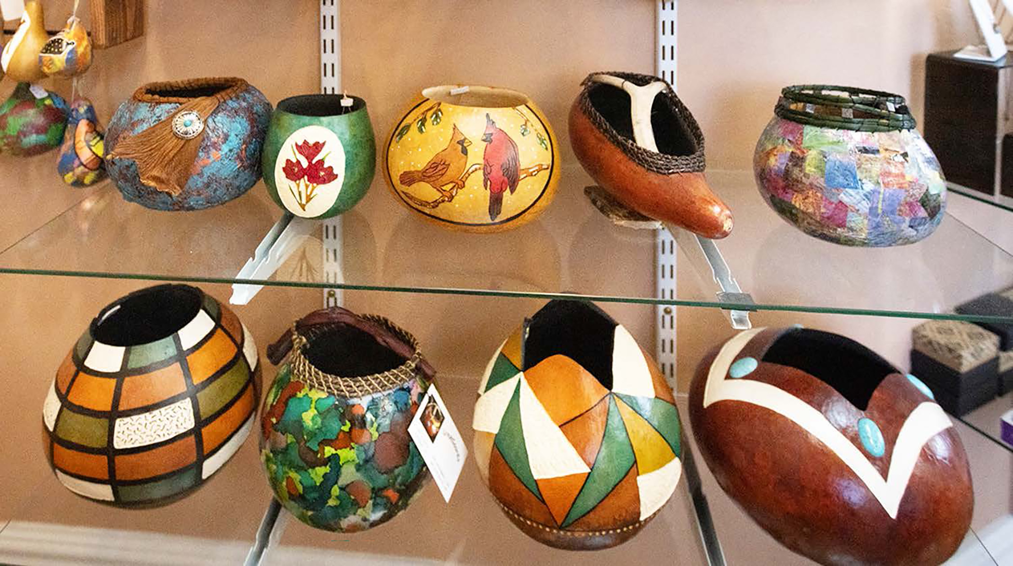 We represent almost 40 artists all working in a variety of mediums from jewelry to oil paintings, from wearable art to photography, from Native American crafts to sculpture.