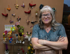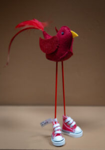 Customers at the Village Gallery convey the delight and wonderment that comes from laying eyes upon Nancy Axelrod’s hand-sewn, felt creations for the first time. They regularly “ooh and ah” over the quirky, long-legged birdies wearing sneakers, or the wide-eyed, wild-haired You-Do dolls (with their button eyes and hair made from colorful yarn), that “help you do what you do.” People often comment on how lifelike they look. Unable to choose just one, customers often approach the counter, clutching an armful of little felt friends.