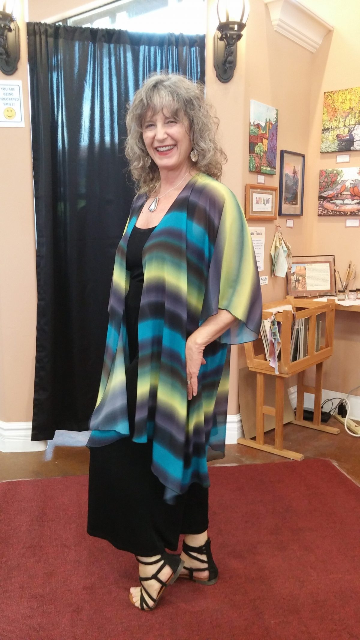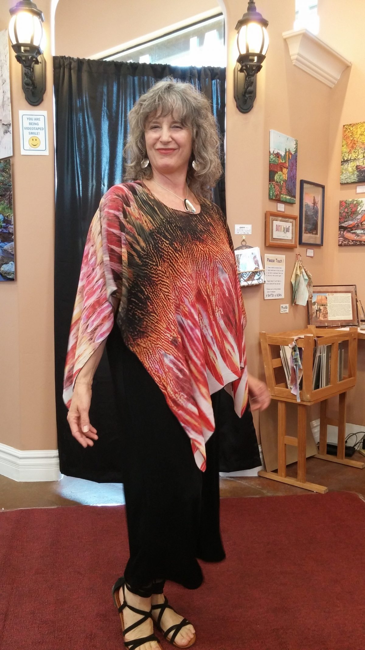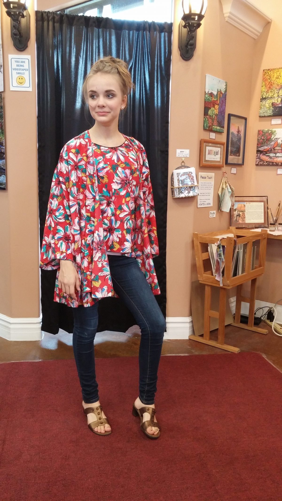 At the July 7th First Friday Art Walk, visitors will be treated to an encore Red Carpet Fashion Show by member artist and local fabric designer, Florence Johns who will present her newest line of original “It’s a Flo’s” clothing. With the help of other gallery artists as models, plenty of food, wine, and lively conversation, the evening promises to be a special one. The July First Friday Art Walk takes place on the 7th from 5 to 8 pm, and the Fashion Show will begin at 5:30.